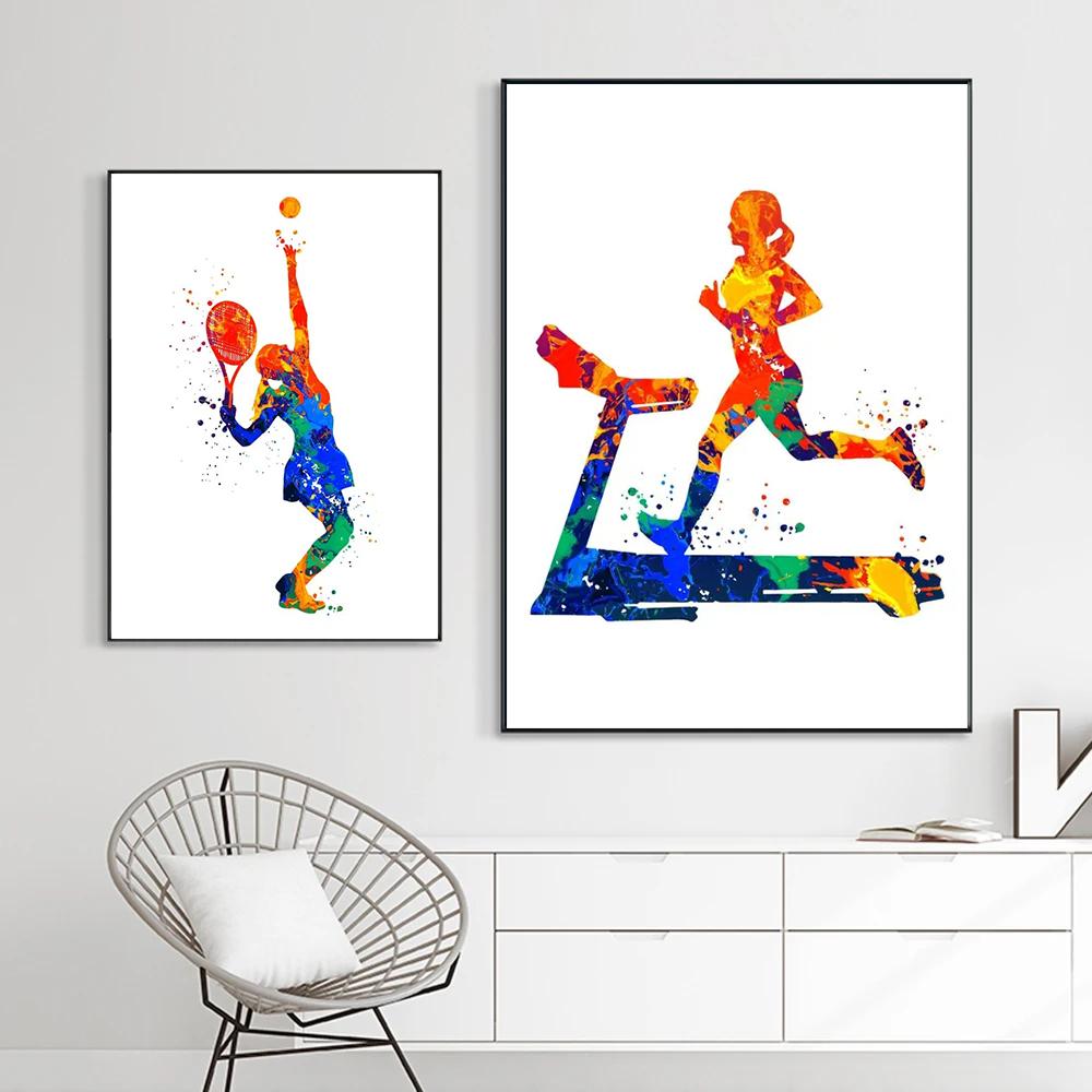 Абстрактные акварельные плакаты и принты молодые баскетболисты современное настенное искусство холст живопись для спортивных комнат украшение дома
