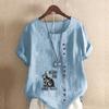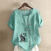 Женская модная футболка с круглым вырезом и коротким рукавом с милым принтом кролика, повседневная рубашка из хлопка и льна с рисунком, свободная летняя блузка для отдыха, топы