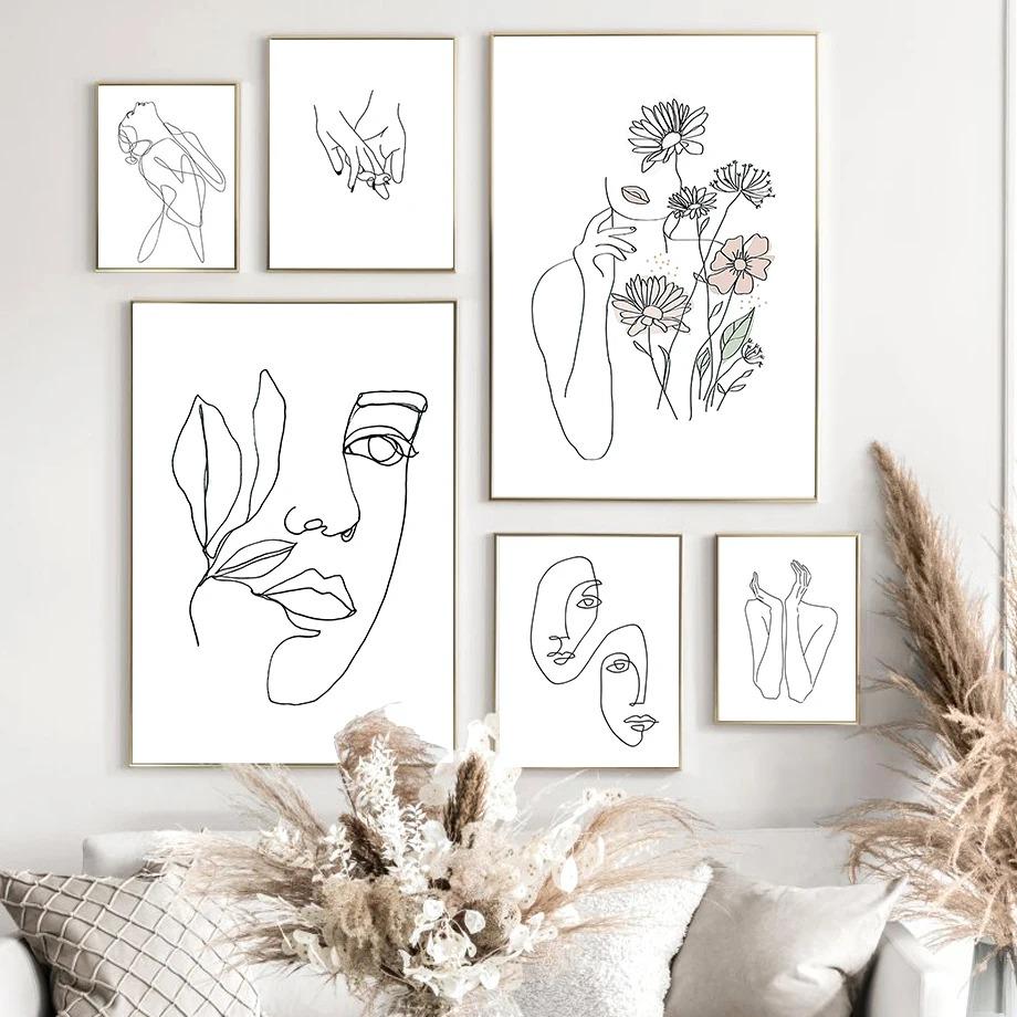 1 шт. настенное украшение постер спальня декор для комнаты абстрактные простые украшения для дома линии лицо холст картины постеры картинки без рамки — купить товар онлайн с бесплатной доставкой по всему миру!
