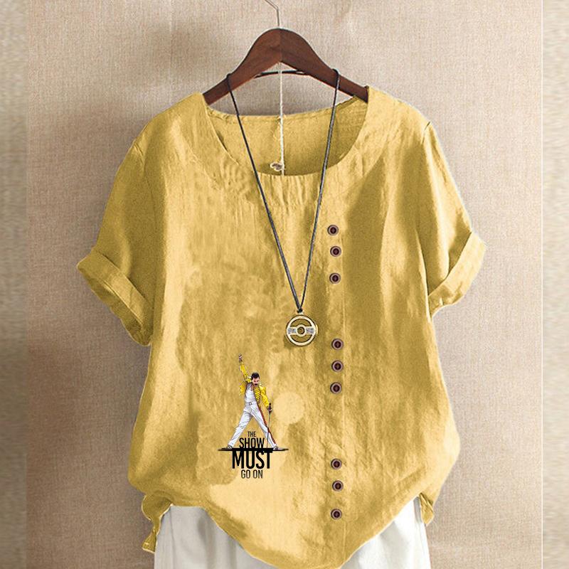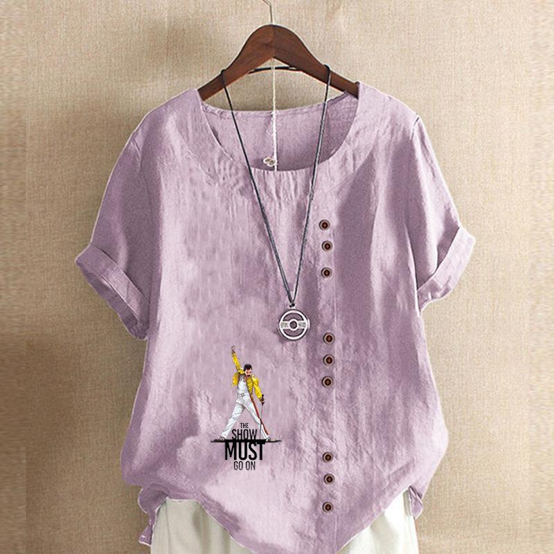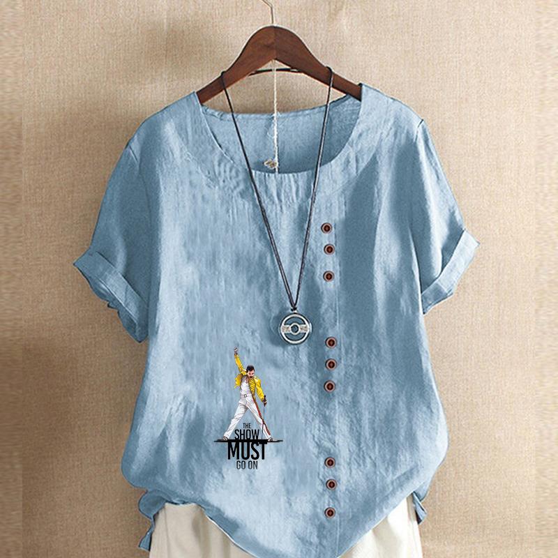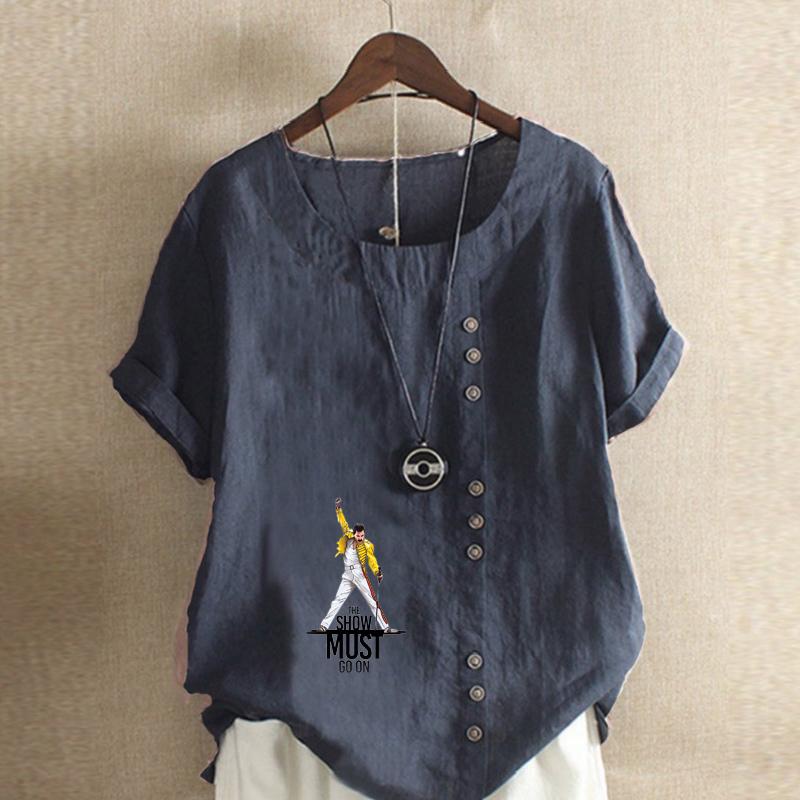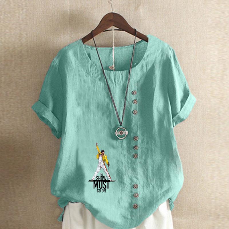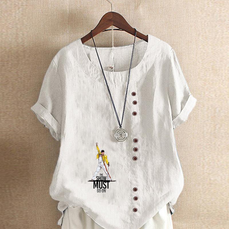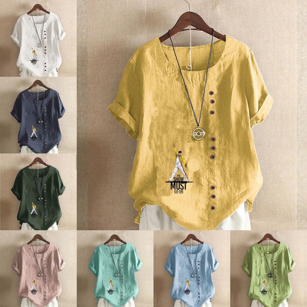 Женская модная футболка с коротким рукавом и круглым вырезом, повседневная хлопковая льняная рубашка с рисунком, свободная летняя блузка с принтом для поющего мальчика, топы