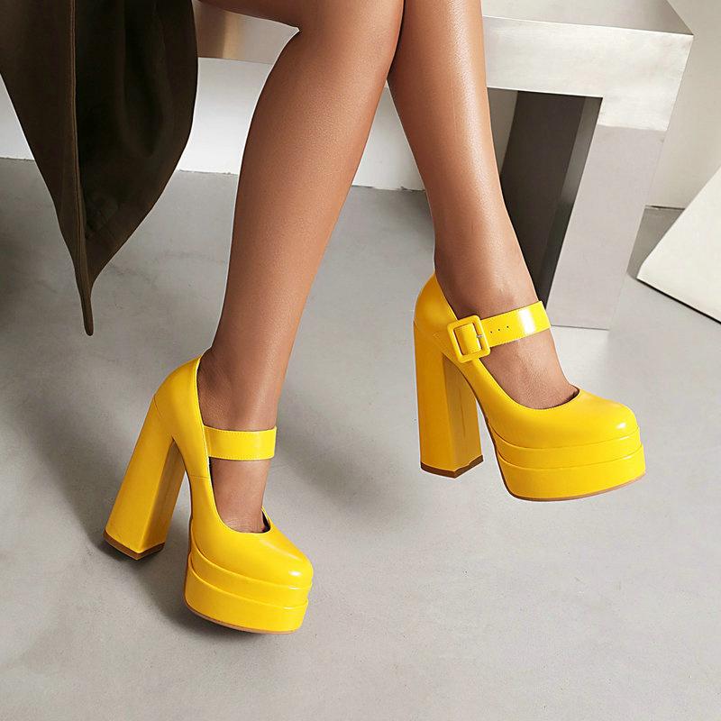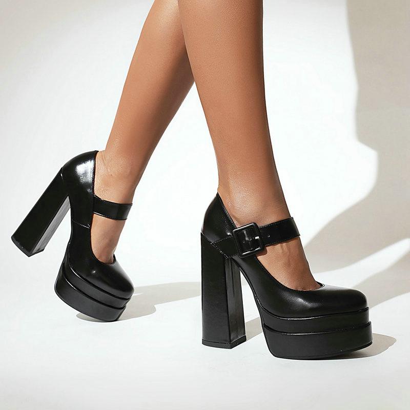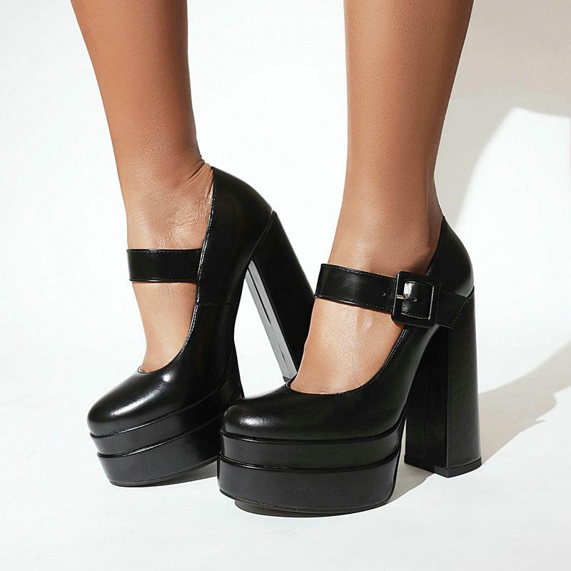 Женские туфли Мэри Джейн на высоком каблуке, женские туфли-лодочки на платформе и массивном каблуке