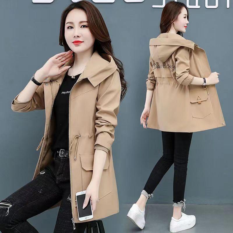 Весенне-осенняя женская ветровка больших размеров с капюшоном, женская повседневная куртка средней длины с поясом — купить товар онлайн с бесплатной доставкой по всему миру!