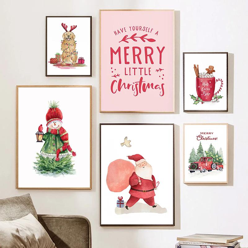 Носок с изображением рождественской праздничной елки, снеговика, автомобиля, собаки, настенная живопись на холсте, постеры и принты, настенные панно, декор для детской комнаты