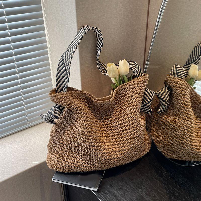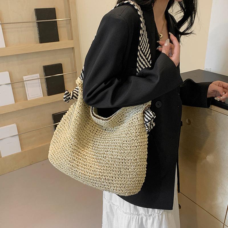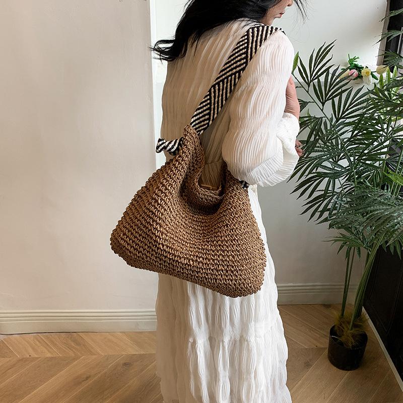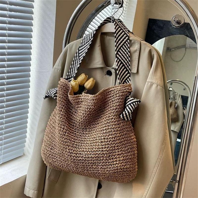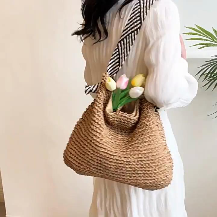 Повседневные летние пляжные соломенные сумки, модные соломенные женские сумки на плечо, бумажные тканые женские сумки, большие кошельки-тоут