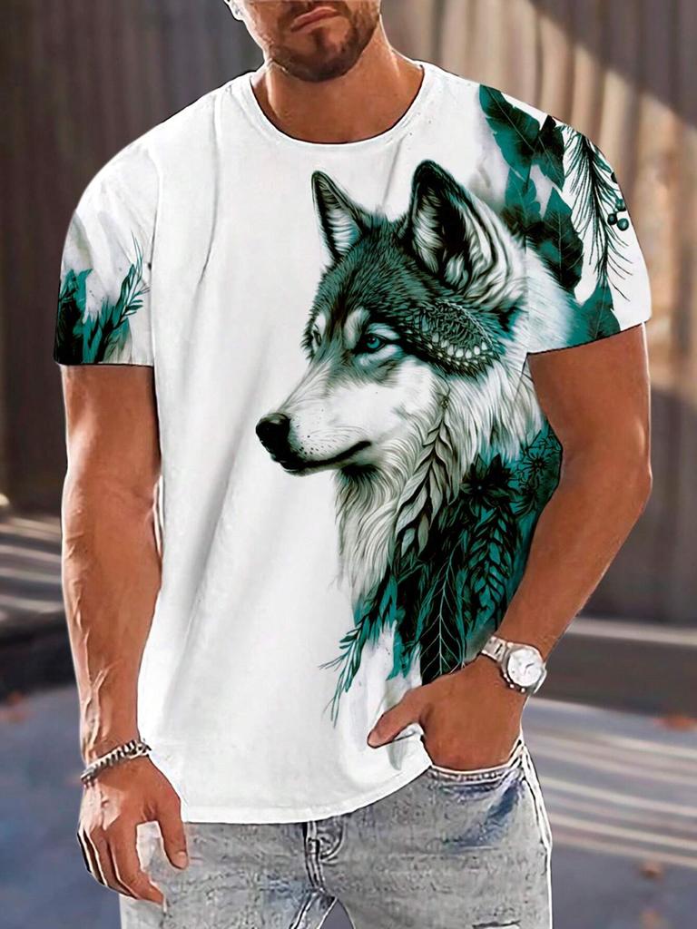 Мужская летняя модная футболка Manfinity LEGND с короткими рукавами и принтом волка
