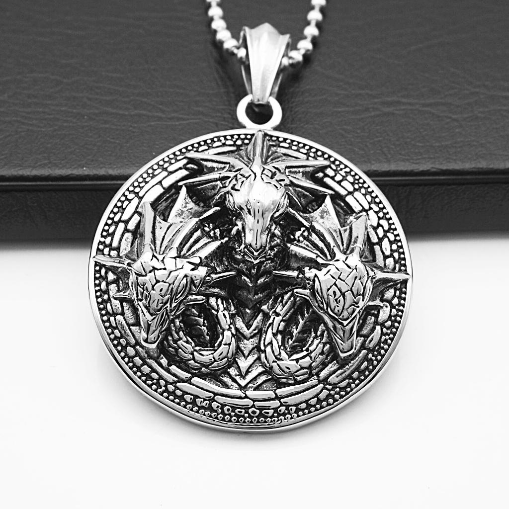 Рок-панк три головы дракона круглый щит кулон ожерелье ювелирные изделия для мужчин — купить товар онлайн с бесплатной доставкой по всему миру!