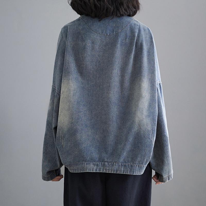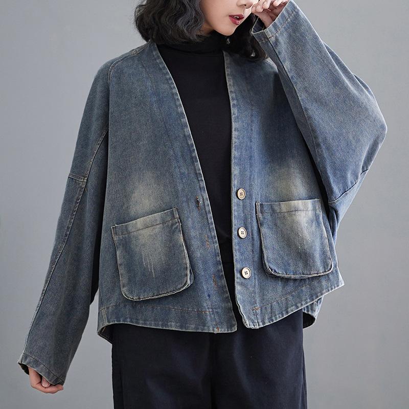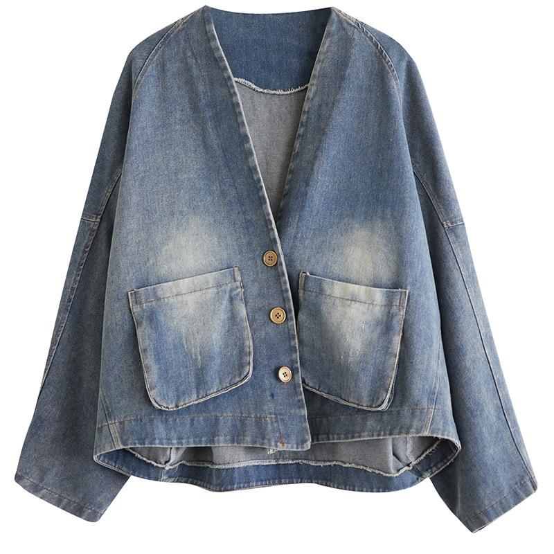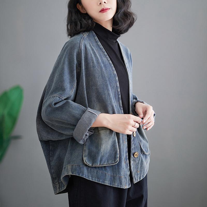 Весенне-осенняя женская джинсовая куртка короткая свободная в стиле ретро