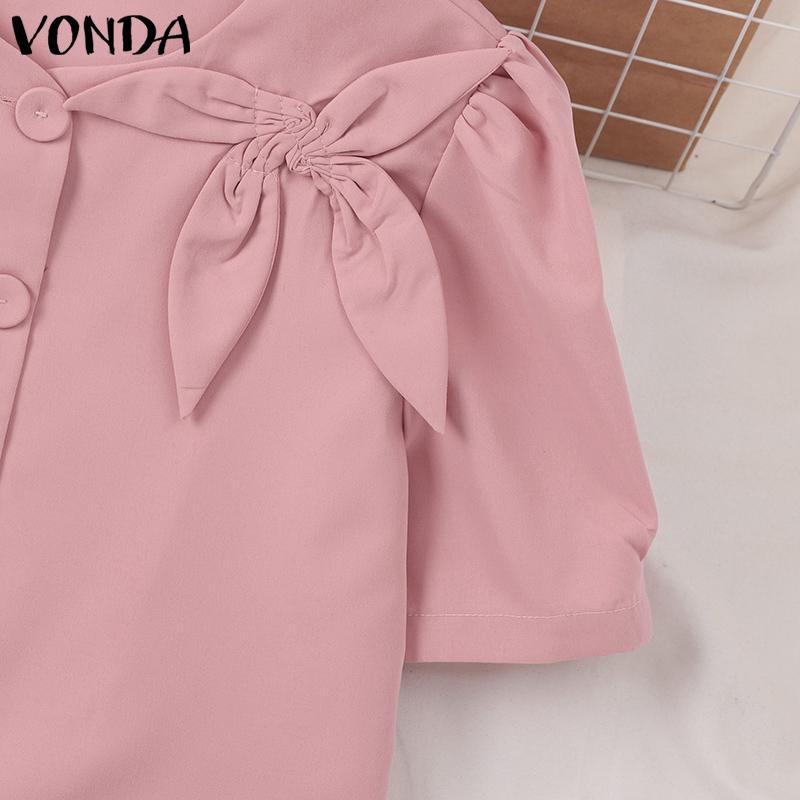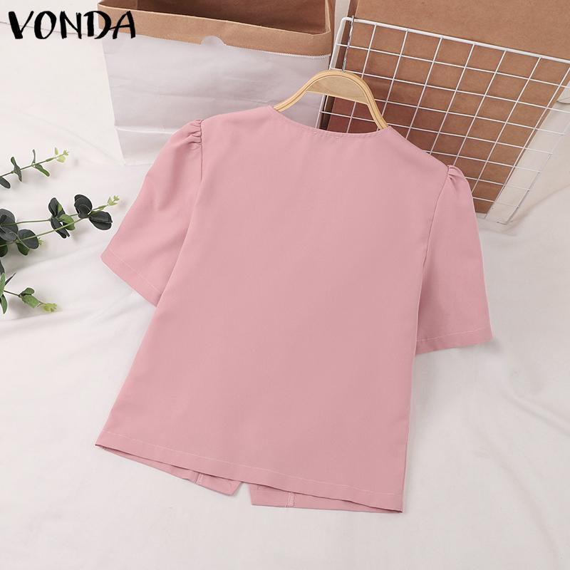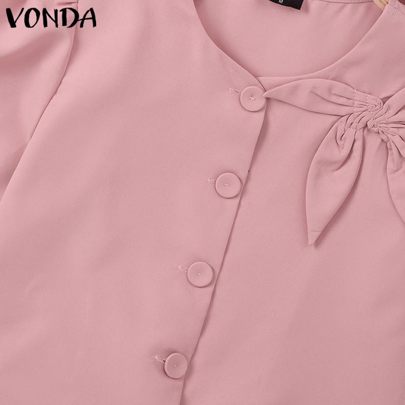 VONDA Женская повседневная круглая шея с коротким рукавом и галстуком, однотонная свободная блузка