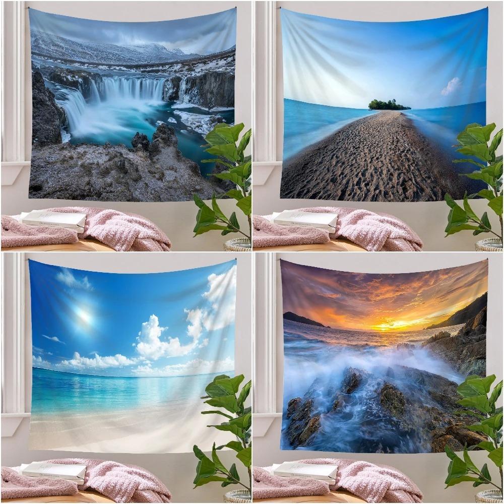 Гостиная Спальня Гобелен Природный Пейзаж Пляжный Принт Узор Модный Домашний Декор Гобелен