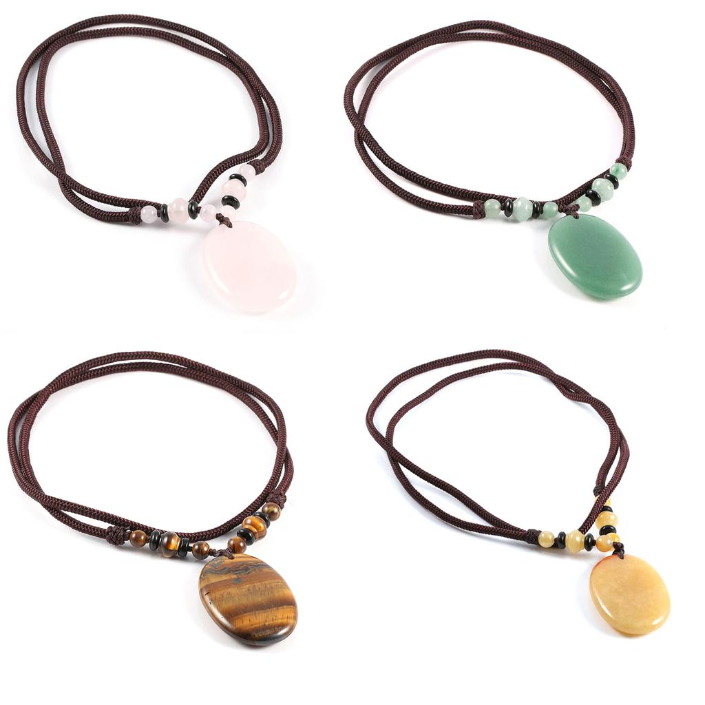 1 шт., энергетический натуральный камень, овальное ожерелье с подвеской, богемная аура, целебный кристалл, драгоценный камень с цепочкой, ожерелья для женщин и мужчин, повседневная одежда, ювелирные подарки