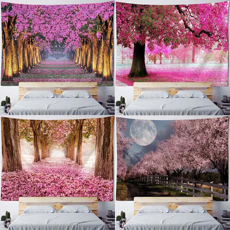 Розовый вишневый лесной узор гобелен украшение для дома гобелен спальня гостиная гобелен