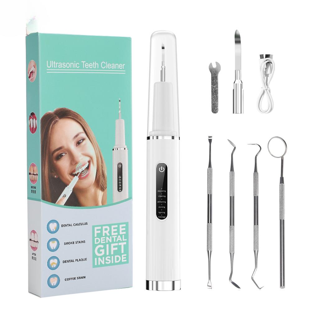 Электрический очиститель зубов, звуковая вибрация, устройство для удаления зубного камня, зубного налета, со светодиодной подсветкой, 6 режимов, набор для отбеливания зубов