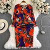 Летнее подиумное модное облегающее платье с принтом розы, женское праздничное платье с круглым вырезом и рукавами 3/4, элегантные вечерние платья миди с разрезом
