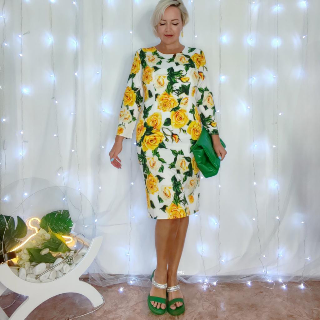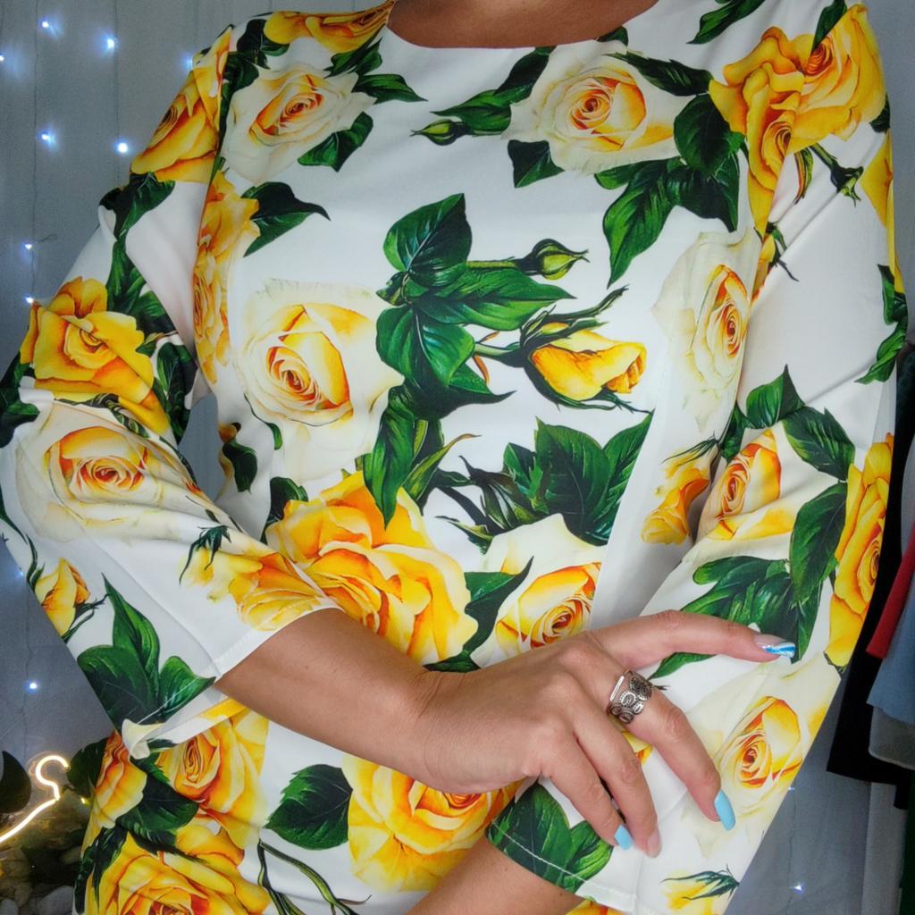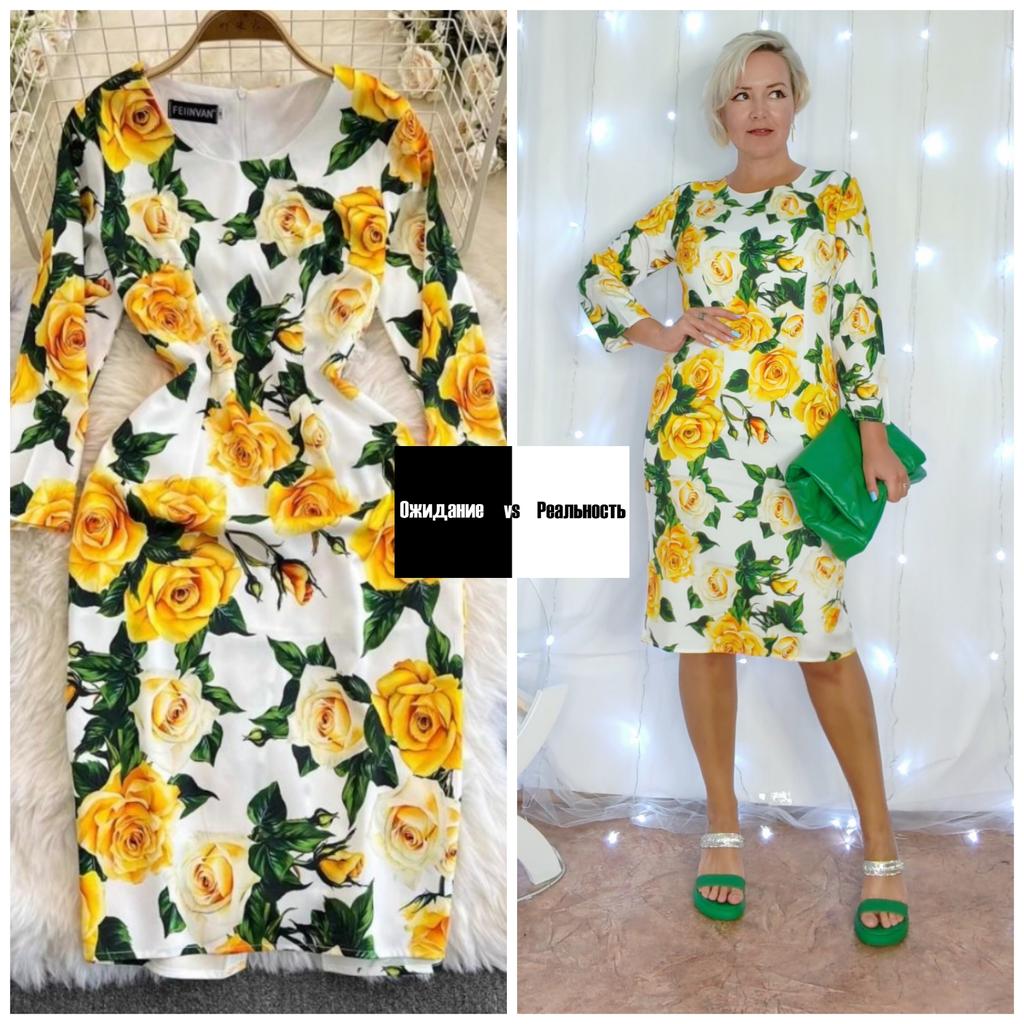 Чайные розы в купе 🎶 Привет! Платье с жёлтыми розами. Удивительно, но это самый любимый принт моих читателей 😁 Красивые жёлтые розвы на белом фоне, изумительно платье. ‼️Добавила разговорное видео, посмотрите перед покупкой ‼️ Ткань : Сшито платье из двух видов ткани : Верхняя ткань тонкая, но держит форму, не тянется и не просвечивается. Внутри подкладка из белой ткани, она тонкая, но приятная к телу, так же не тянется. Дизайн : Платье футляр - застегивается на потайную молнию, которая находится на спине. Сзади есть разрез, на мой рост высоковат, надо будет зашить. Размер: На мне XXL Мои параметры : рост 172 см 98/76/106 см 📏Детали: Длина 109 см Плечи 42 см Длина рукава 53 см ОГ 100 см ОТ 84 см ОБ 106 см Резюмирую : Мне нравится платье, смотрится празднично, при этом его легко вписывать и в повседневный гардероб. Рекомендую 💯 Я не прощаюсь, M_K #чайная_роза