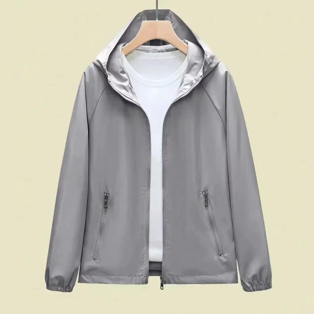Женская весенне-летняя однотонная куртка с капюшоном на молнии, свободная повседневная ветровка