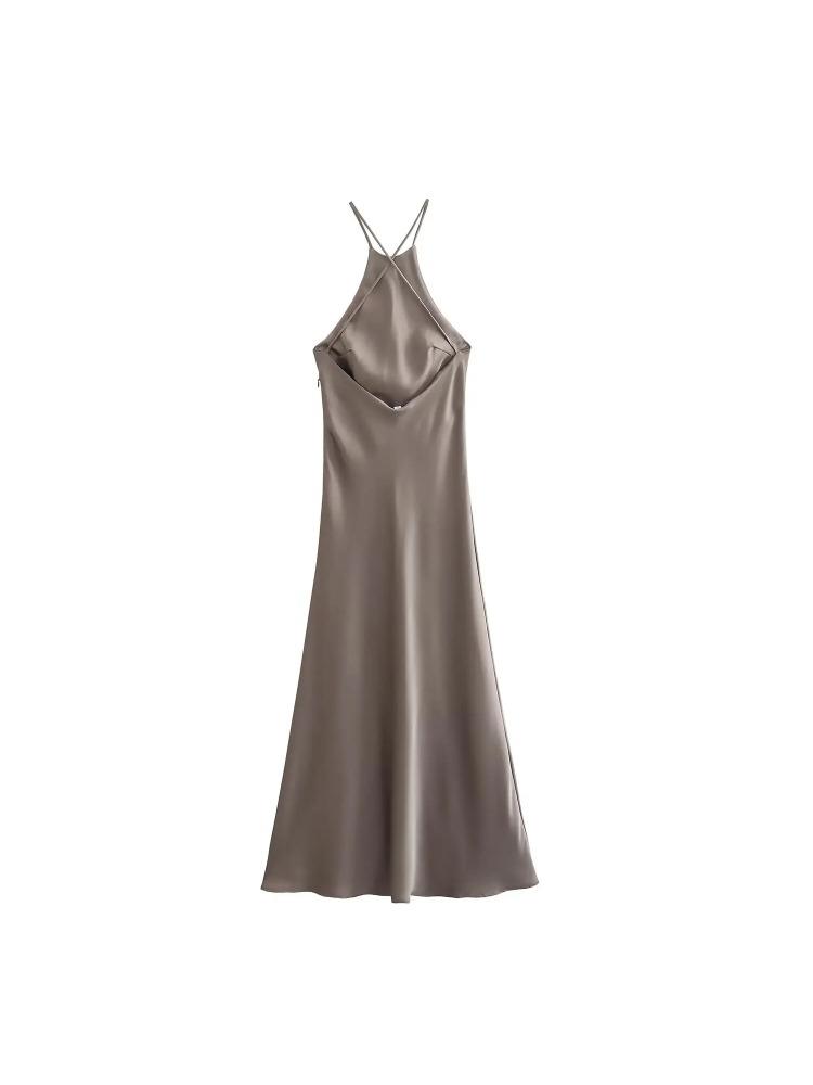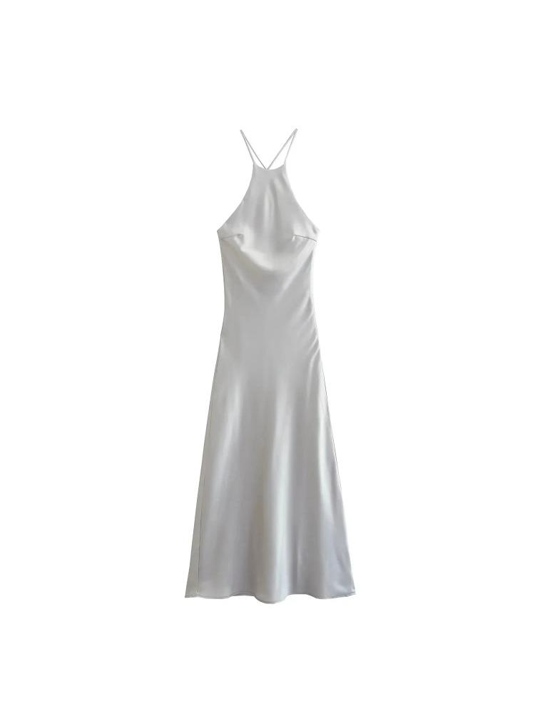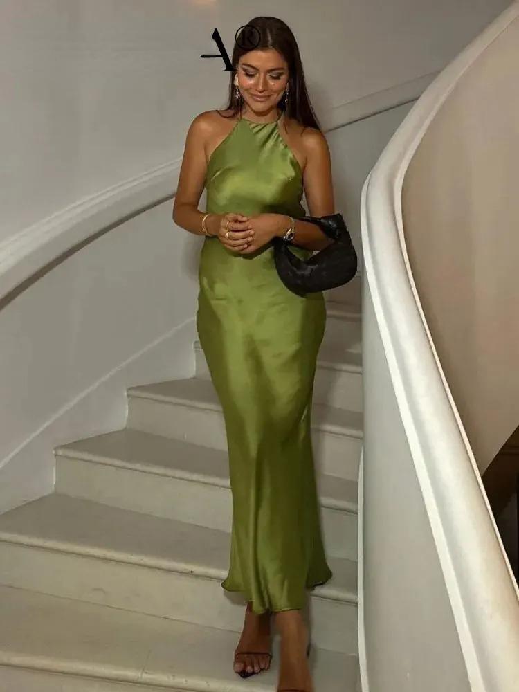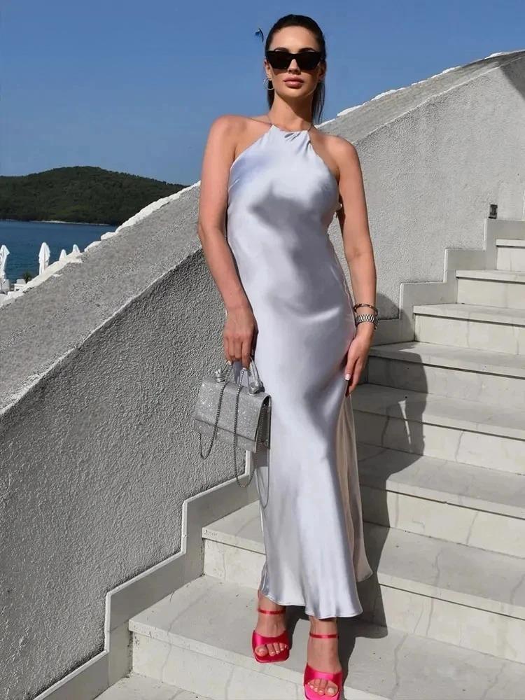 Летнее сексуальное однотонное платье с открытой спиной на шее, женское элегантное шикарное винтажное вечернее платье, модное шикарное уличное платье без рукавов