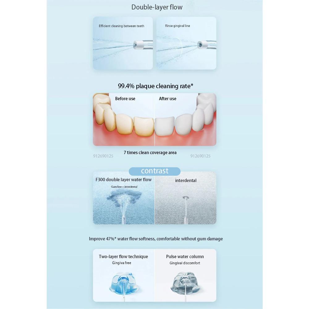 Оральный ирригатор F300 MEO703 Waterpulse стоматологический ирригатор портативный ирригатор для полости рта IPX7 240 мл резервуар для воды очиститель зубов
