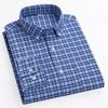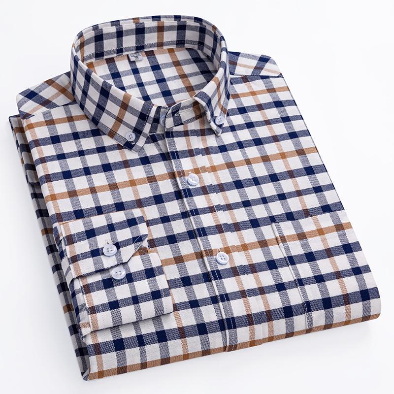 Оксфордские мужские рубашки из чистого хлопка с длинным рукавом, простой в уходе воротник на пуговицах, классическая мужская клетчатая рубашка, обычная посадка, зима-весна
