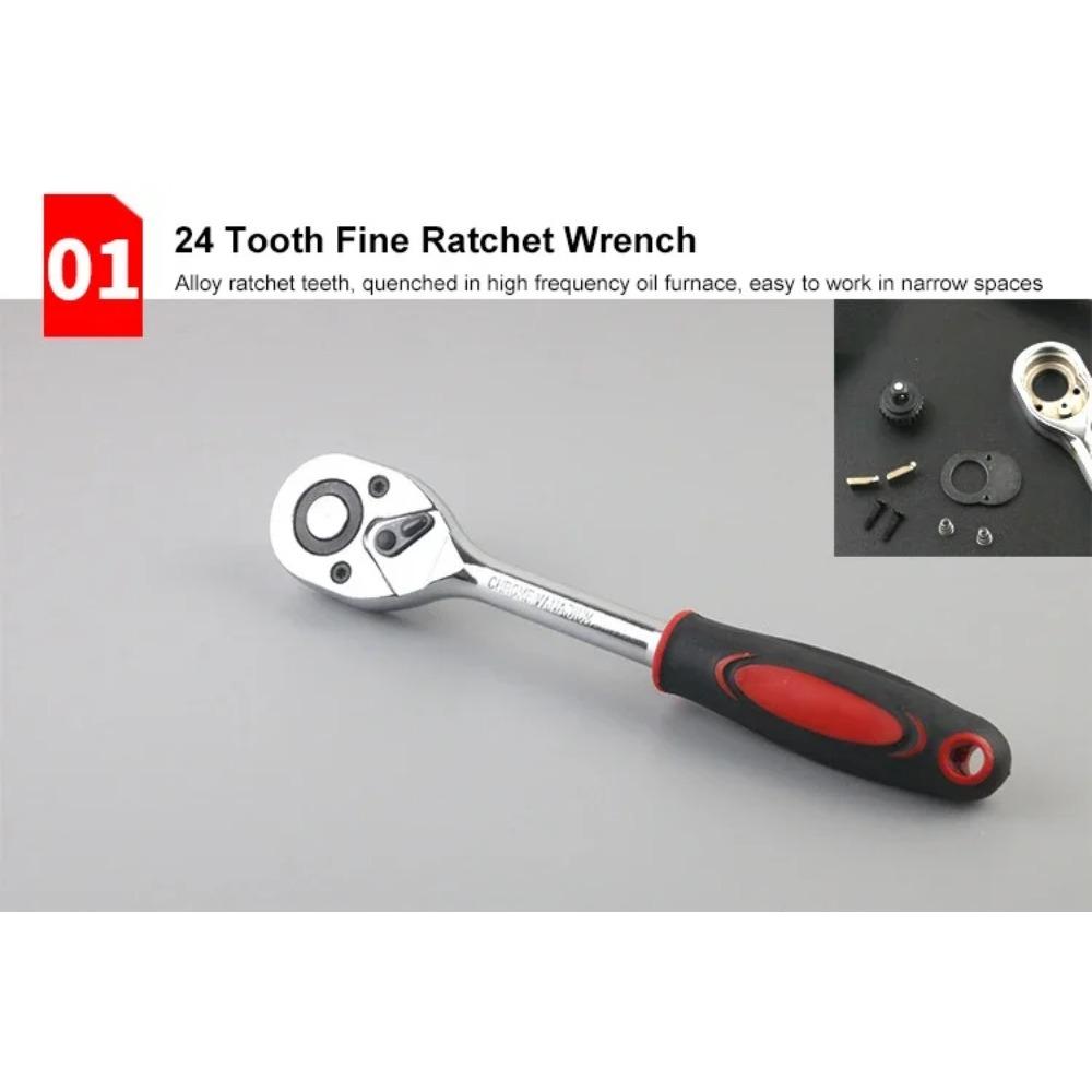 • Комбинированный динамометрический ключ с храповым механизмом :Динамометрический ключ с храповым механизмом позволяет легко и эффективно затягивать и ослаблять болты и гайки, что делает ремонт более удобным.