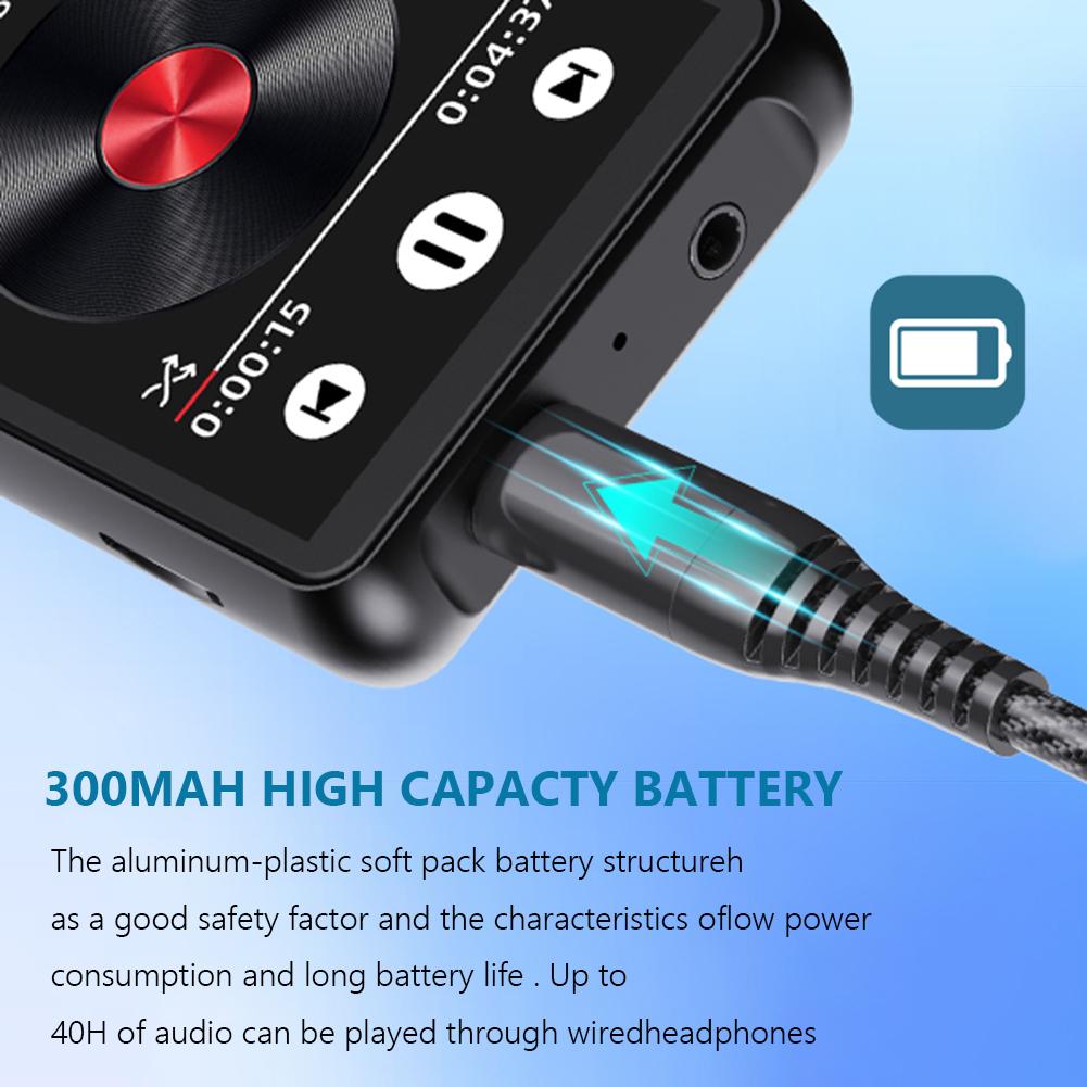2. Стабильное Bluetooth-совместимое соединение: Благодаря новейшей технологии Bluetooth-совместимости портативный цифровой музыкальный плеер обеспечивает высокую скорость передачи данных, стабильную работу, улучшенную совместимость и превосходную защиту от помех.. Наслаждайтесь плавным сопряжением и стабильным соединением с Bluetooth-совместимыми динамиками или наушниками для непрерывного прослушивания музыки. (уведомление: Невозможно подключиться к смартфонам или ПК через Bluetooth-совместимый).