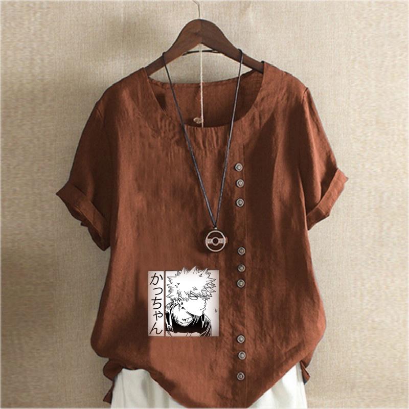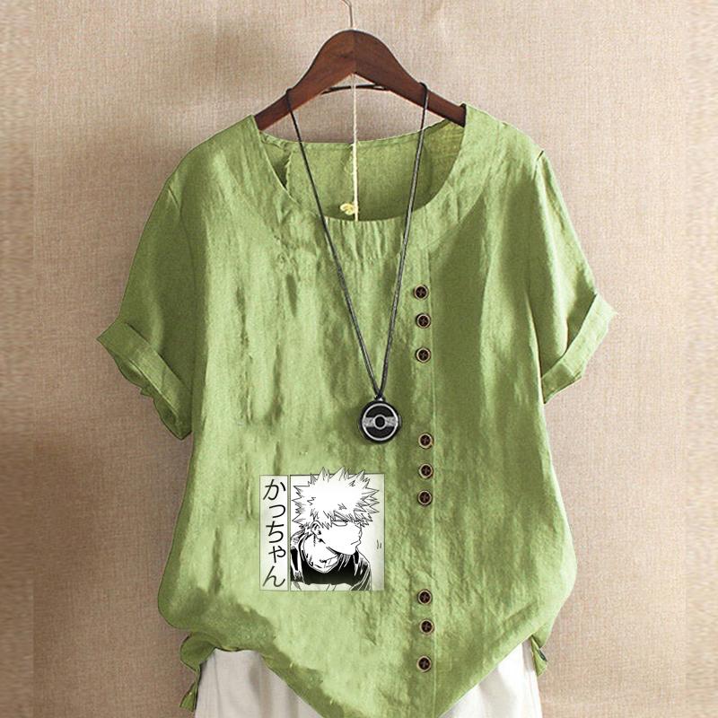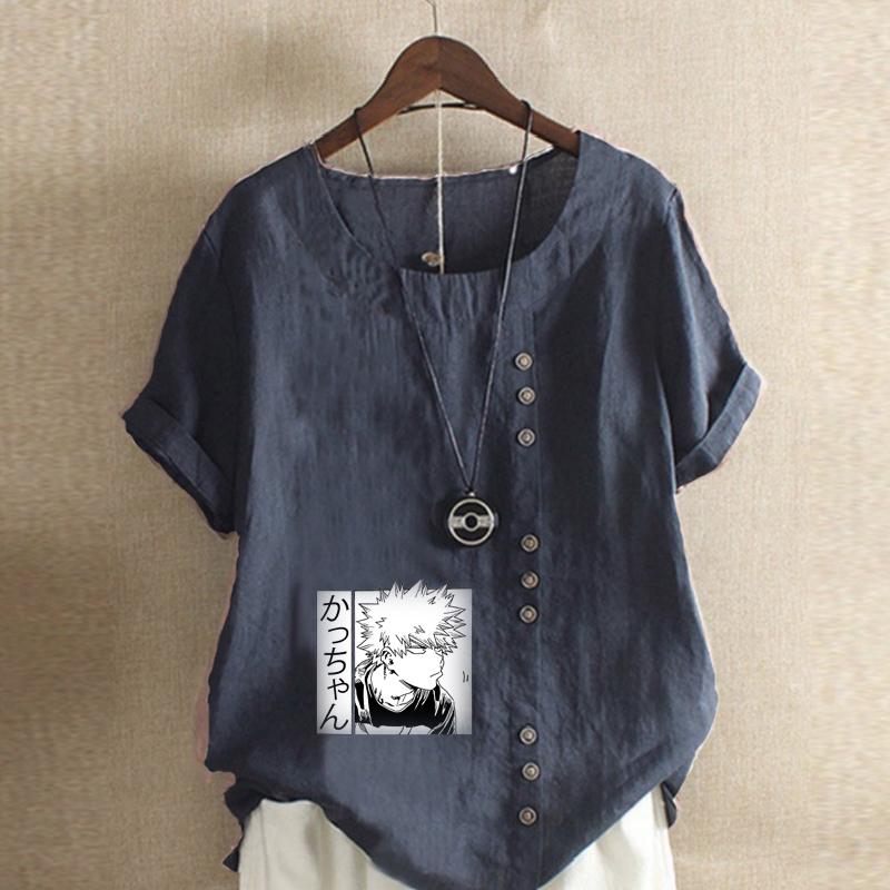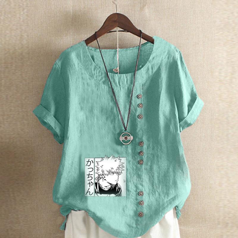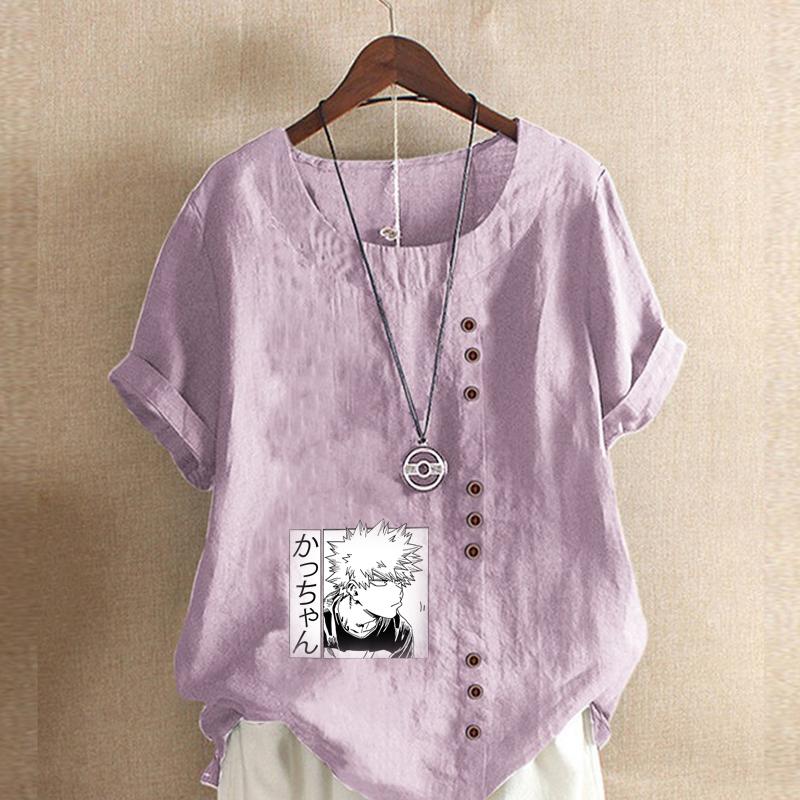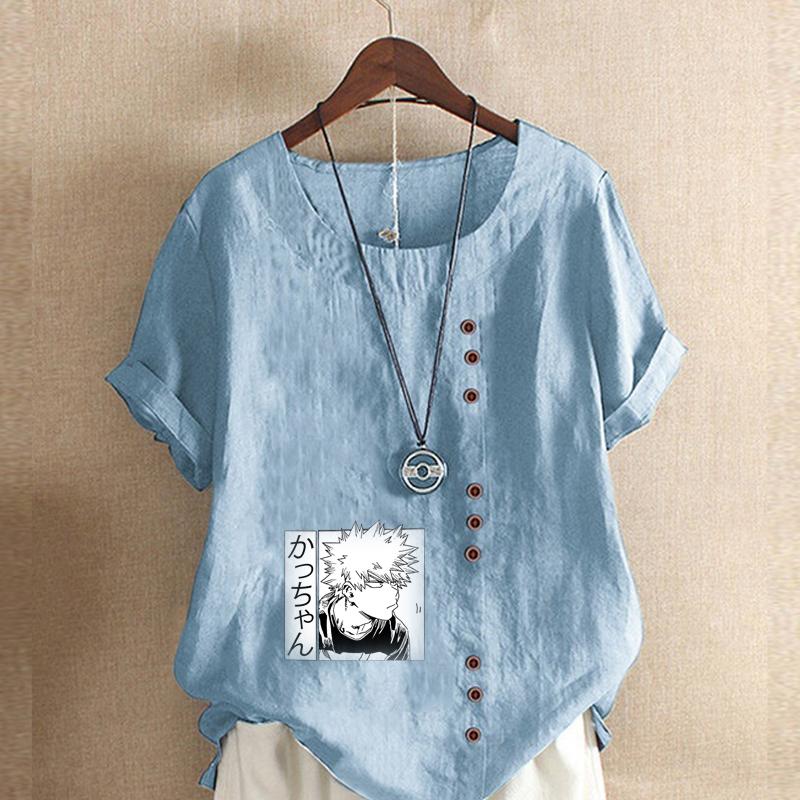 Женская мода Футболка с принтом мультяшных персонажей, круглым вырезом и коротким рукавом, повседневная хлопково-льняная графическая футболка, свободная летняя блузка, топы, большие размеры