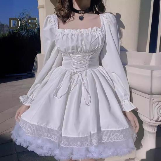 Раскройте свою внутреннюю принцессу в этом милом платье Лолита с объемными рукавами, которое сочетает в себе неподвластную времени элегантность и современный стиль.. Длинные рукава, кружевная юбка и регулируемый пояс на талии создают универсальный предмет, который можно стилизовать по-разному в соответствии с вашим уникальным вкусом.