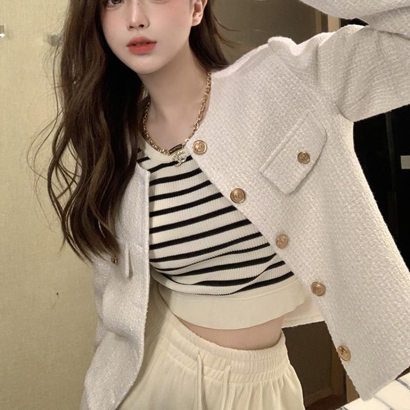 Повседневная женская куртка 2023, весенне-осенняя модная темпераментная универсальная короткая верхняя куртка во французском стиле во французском стиле, шикарное элегантное женское пальто для путешествий