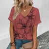 Женская футболка с коротким рукавом и V-образным вырезом Футболка с цветочным принтом в стиле ретро Модная футболка с коротким рукавом Летняя женская футболка для отдыха
