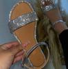 Новинка 2024 года, летние пикантные женские сандалии со стразами, обувь с ремешком на спине, женская обувь на плоской подошве с блестящими комфортными сандалиями, размер 35-43