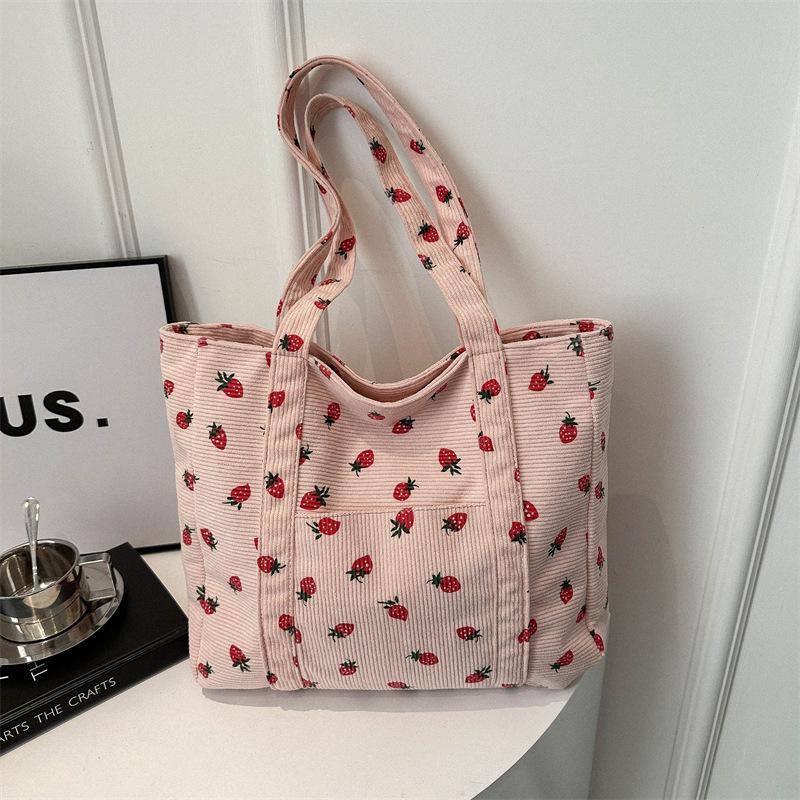Вельветовая сумка-тоут с клубничным принтом на молнии, сумка через плечо, дорожная сумка