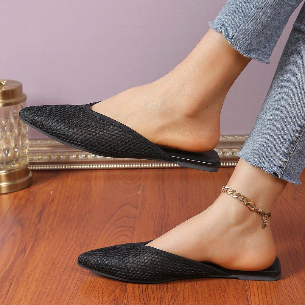 2024 женские летние новые большие тапочки с сетчатой полой, повседневные сандалии на плоской подошве и пустые сандалии сзади для женщин