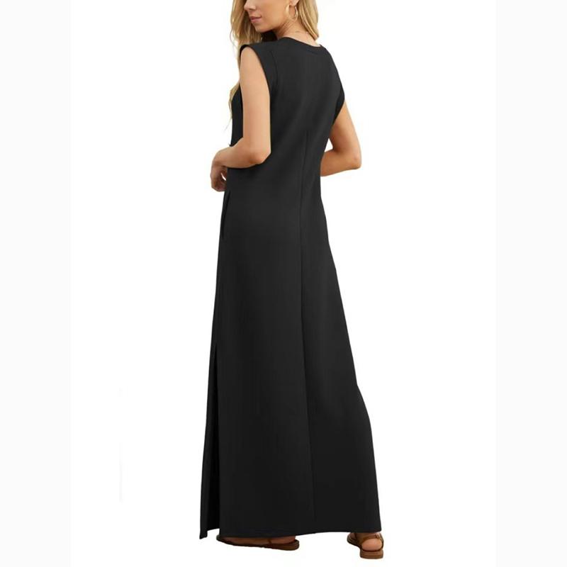 Элегантное модное женское длинное платье трапециевидной формы, однотонное повседневное летнее платье больших размеров со свободной талией, женские простые офисные женские платья 24499