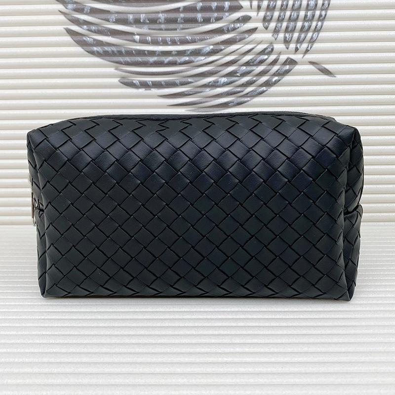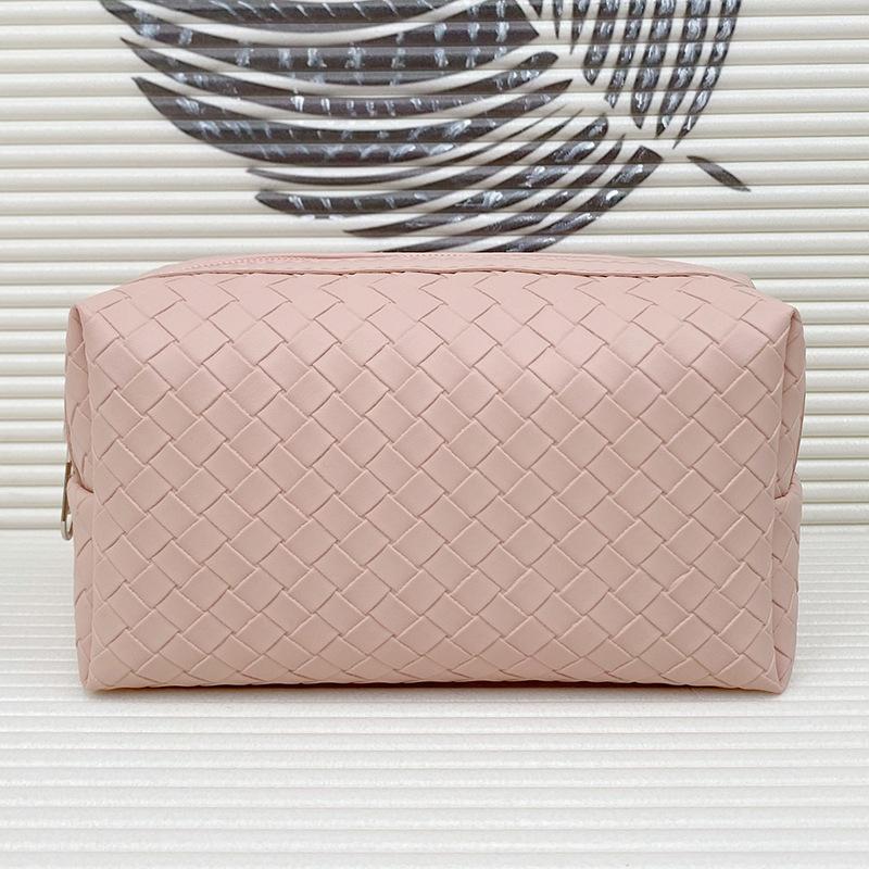 Косметичка из плетеной искусственной кожи, водонепроницаемая, для путешествий, большая вместимость, портативная и переносная сумка для кистей для макияжа, минималистичная косметичка