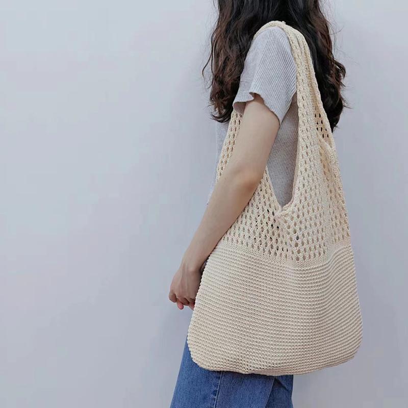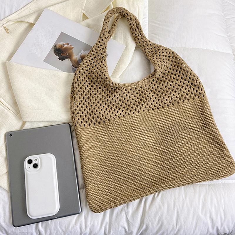 Винтажная открытая летняя пляжная тканая женская сумка на плечо, вязаные сумки, большая вместительная сумка-тоут, связанная крючком