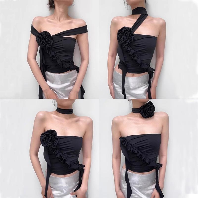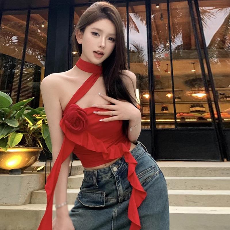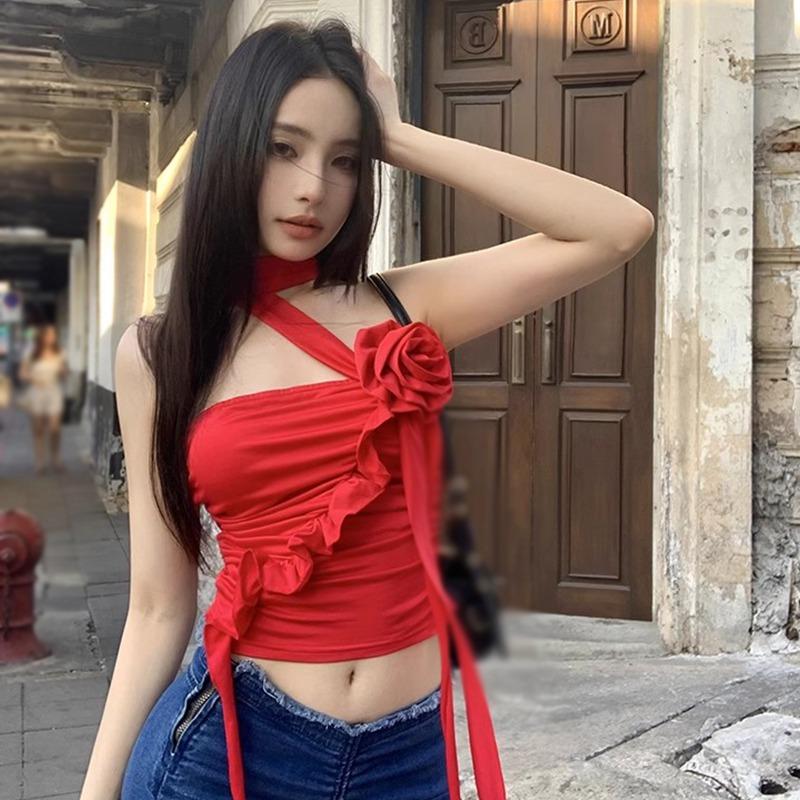 Женский жилет с цветочным украшением, бретелька с бретельками, тонкий топ на бретельках
