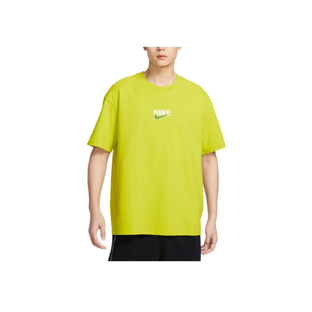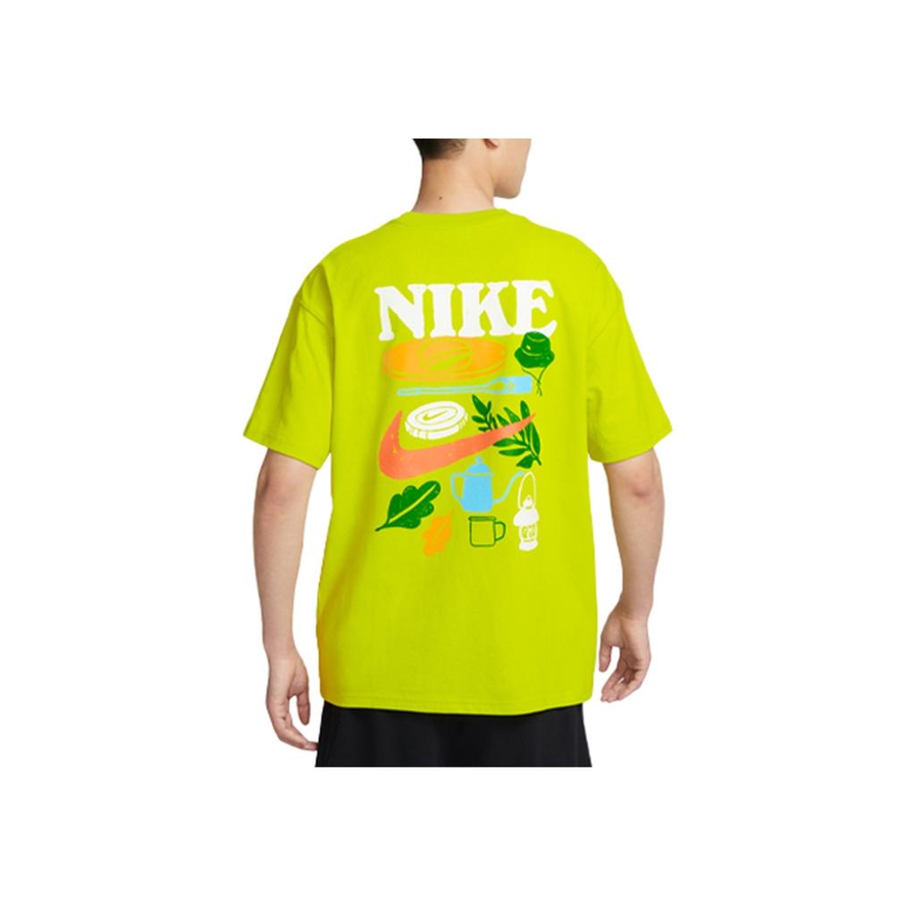 Nike Мультяшный принт в стиле ретро, свободная посадка, хлопковая удобная футболка с коротким рукавом и заниженными плечами, мужские топы, кактус-зеленый, FN3700-335