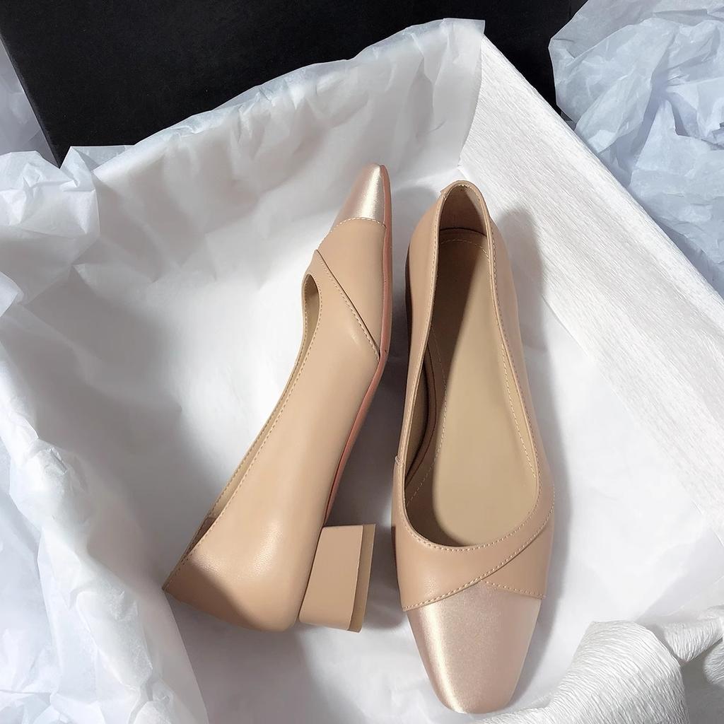 Женские туфли на массивном блочном каблуке с квадратным закрытым носком, шелковые лоскутные туфли из искусственной кожи на низком каблуке, повседневные женские рабочие туфли-лодочки, удобные нарядные туфли, нескользящие туфли-лодочки