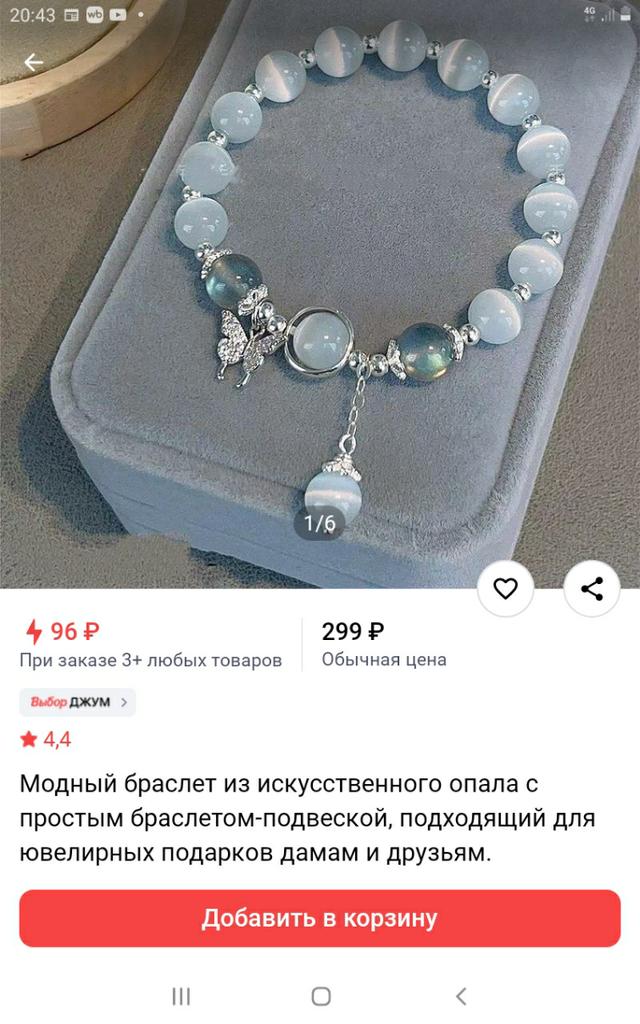 Браслетик симпатичный, для детей. Только писали что при покупки 3 х товаров будет стоить 64 рубля, а взяли 144рубля, хотя я заказывала 6 товаров. и так почти со всеми заказами. Следующий раз буду внимательней.