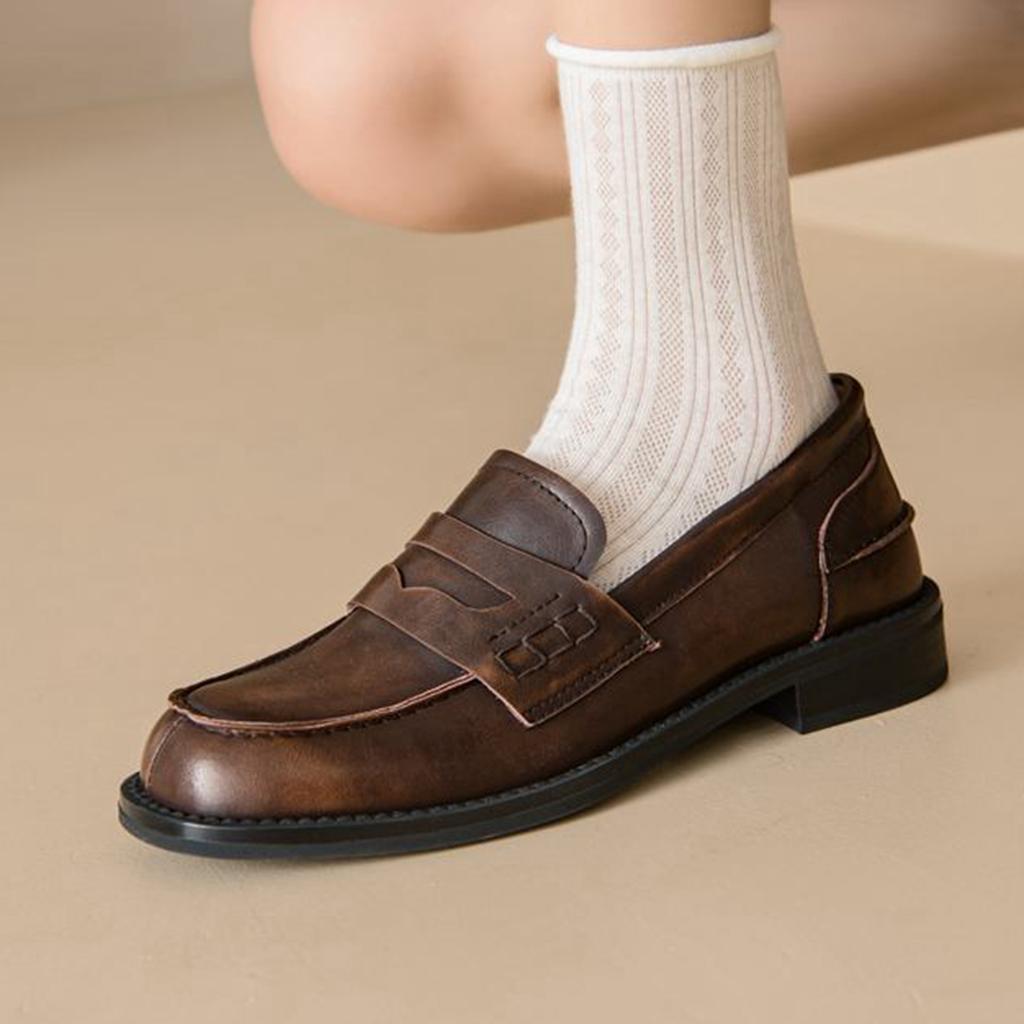 Туфли Krazing Pot из натуральной кожи с круглым носком на низком каблуке, осенне-летние, женские, без застежек, оксфордские туфли, винтажные туфли — купить товар онлайн с бесплатной доставкой по всему миру!