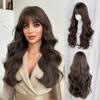 Коричневые вьющиеся парики с воздушной челкой, 24-дюймовые синтетические парики из волокна, термостойкие натуральные вечерние или селфи для женщин, корейская мода