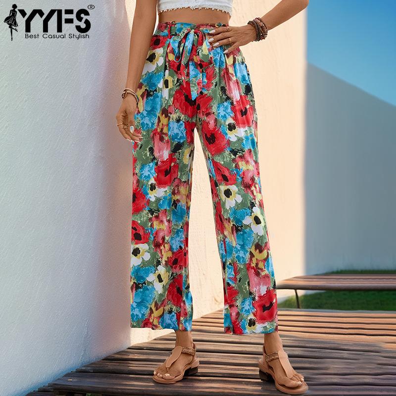 YYFS Женские модные повседневные летние весенние однотонные брюки с высокой талией и принтом, брюки и капри