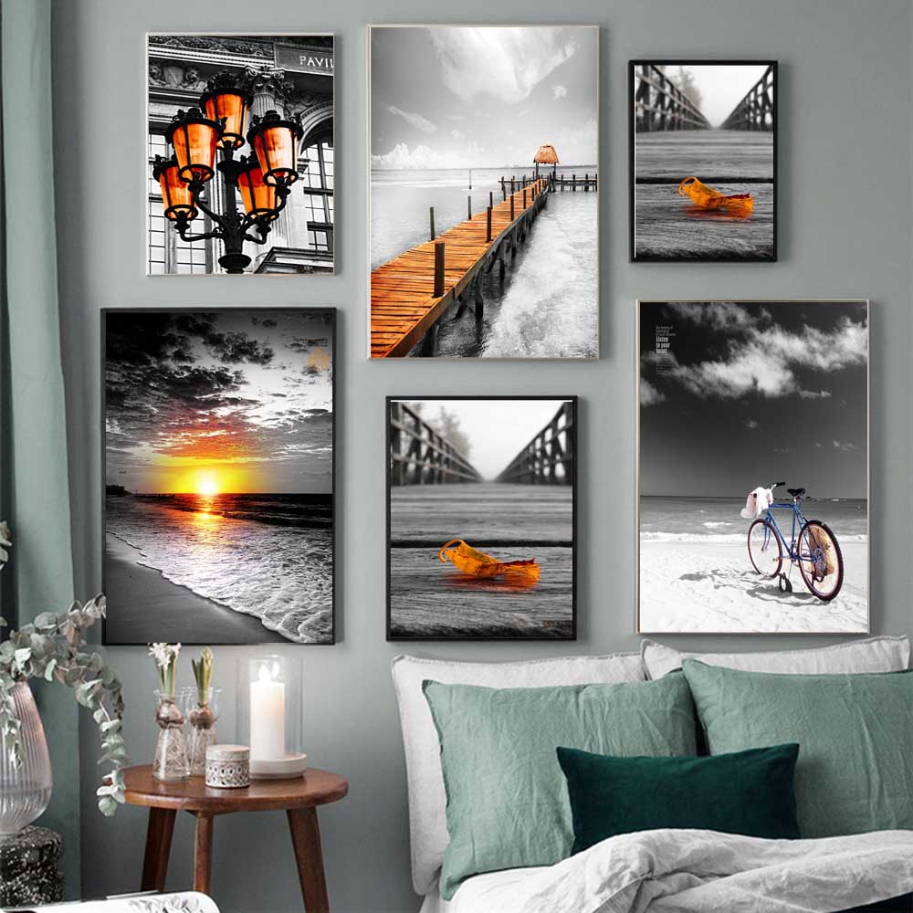 Ретро-арт уличный фонарь пейзаж холст картина морской закат плакат офис настенная живопись гостиная украшение дома фреска без рамки