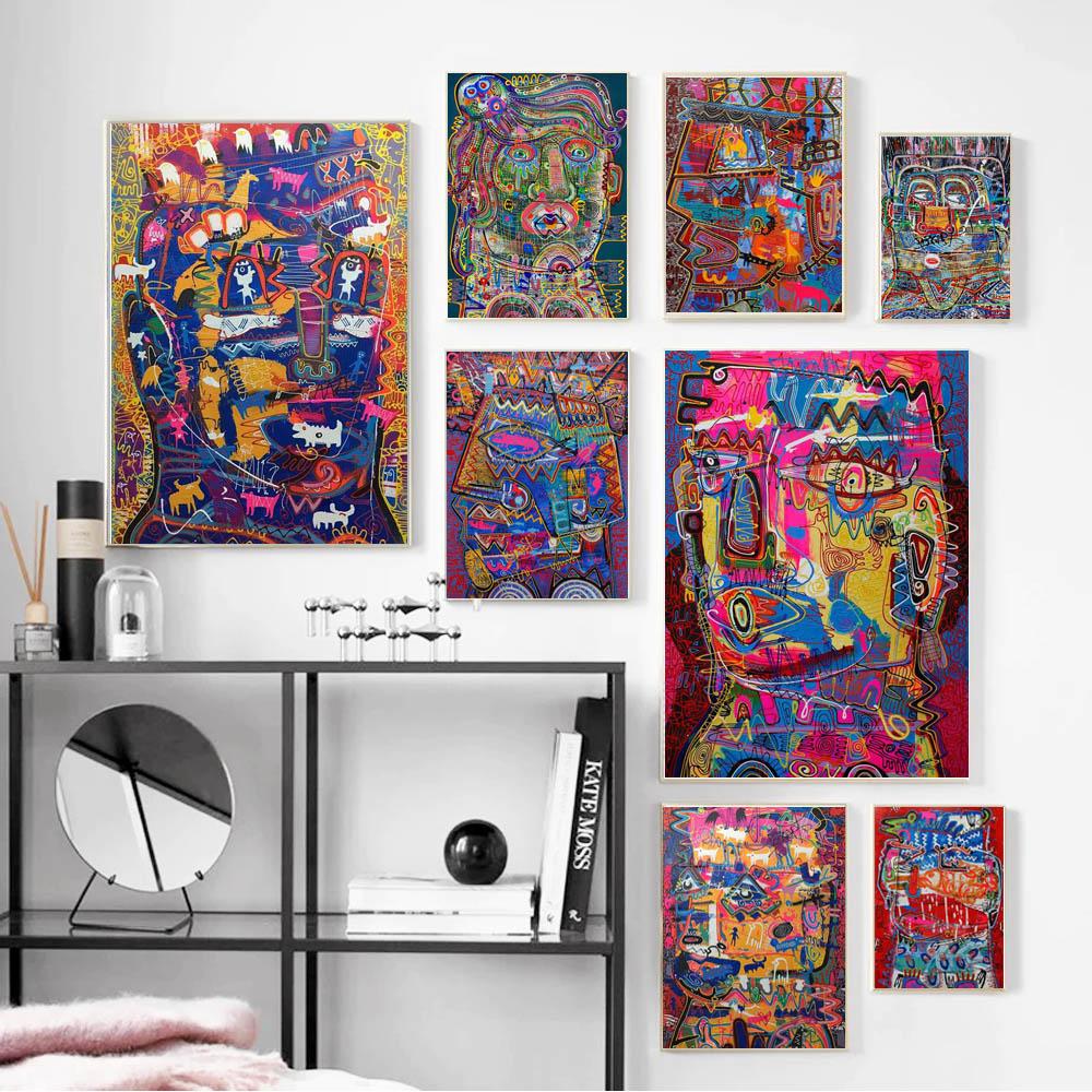 Уличное граффити искусство абстрактная настенная живопись фигура холст картина офис постер гостиная спальня украшение дома фреска без рамки