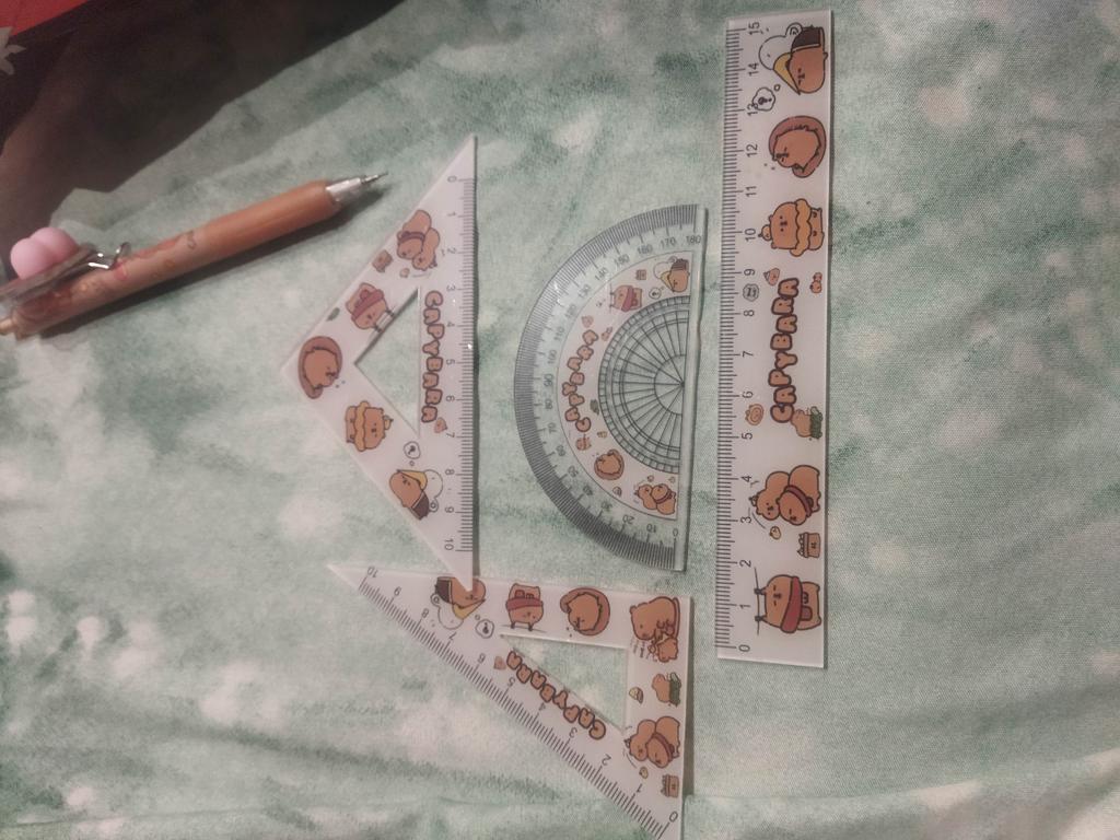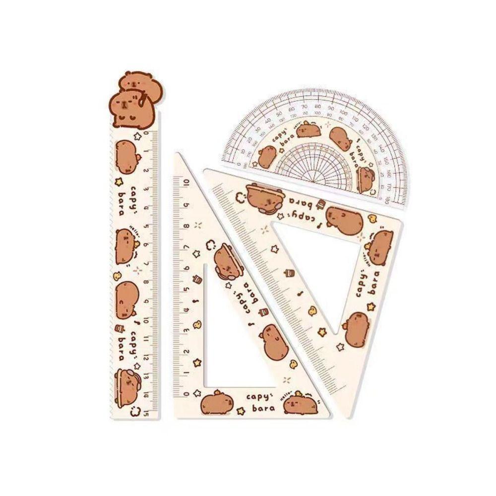 Симпатичная линейка, набор из четырех предметов, мультяшный узор с капибарой, набор линеек, треугольный транспортир, детский набор — купить товар онлайн с бесплатной доставкой по всему миру!