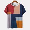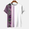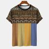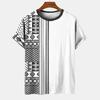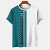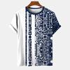 Геометрический полосатый узор, летний напечатанный высококачественный мужской топ, повседневный, простой, повседневный, модная рубашка свободного покроя с круглым вырезом и коротким рукавом