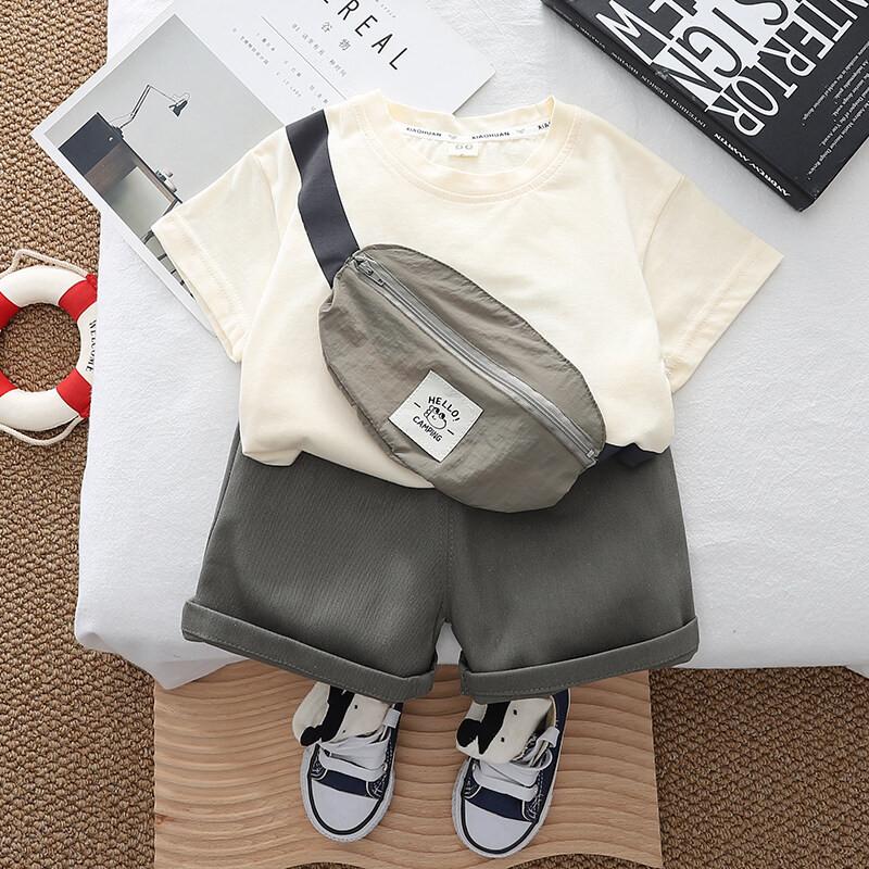 Одежда для маленьких мальчиков, летняя новая модная футболка с большим карманом + шорты, однотонная хлопковая футболка из двух предметов