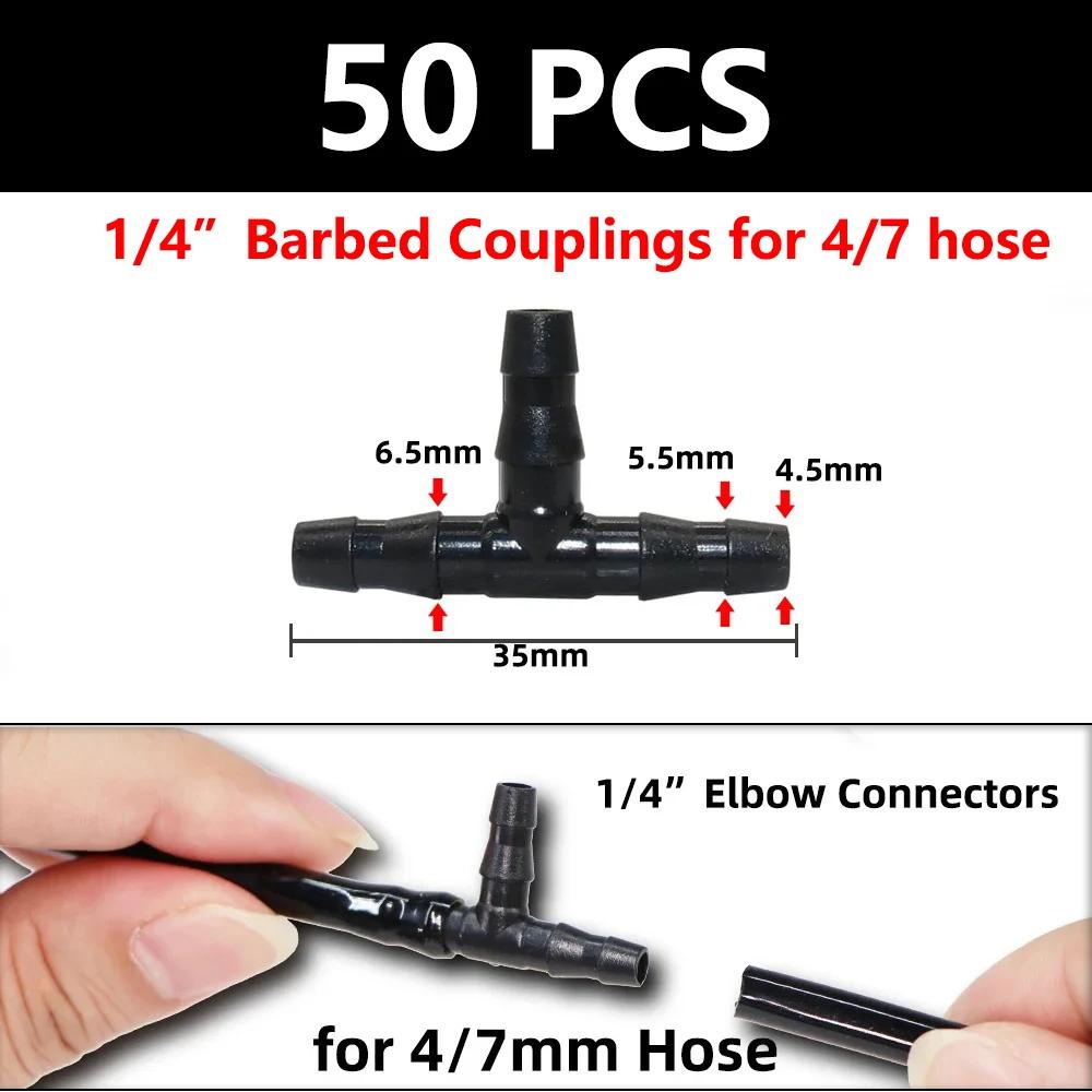 50 шт. колючие коннекторы, фитинги для капельного орошения, колючие коннекторы 4/7 мм, фитинги для трубок для цветочного горшка, садового газона