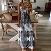 Женское модное шикарное платье макси с принтом Argyle на бретельках Летняя пляжная одежда Платье для отпуска Платье без рукавов Платье на бретельках Длинное платье
