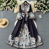 Элегантное длинное платье во французском стиле ретро, женские вечерние платья в придворном стиле с принтом пейсли, женские тонкие длинные платья трапециевидной формы с v-образным вырезом