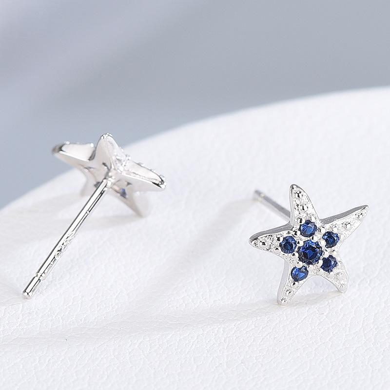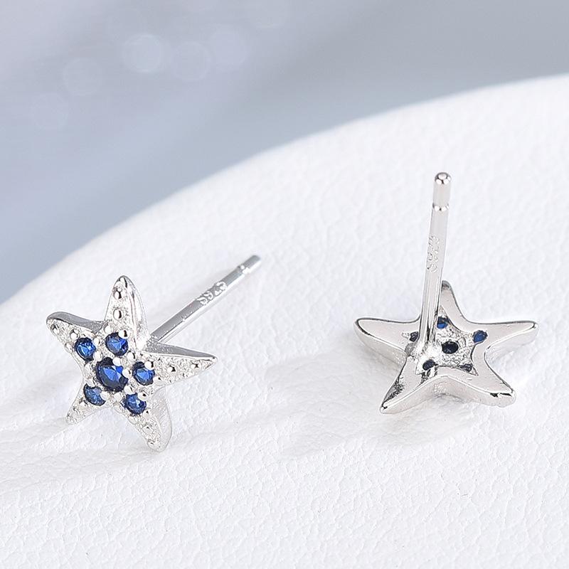 Серьги-гвоздики в форме звезды из стерлингового серебра S925 с голубыми бриллиантами, простые, парные, в корейском стиле, подходящие друг другу, в виде пятиконечной звезды